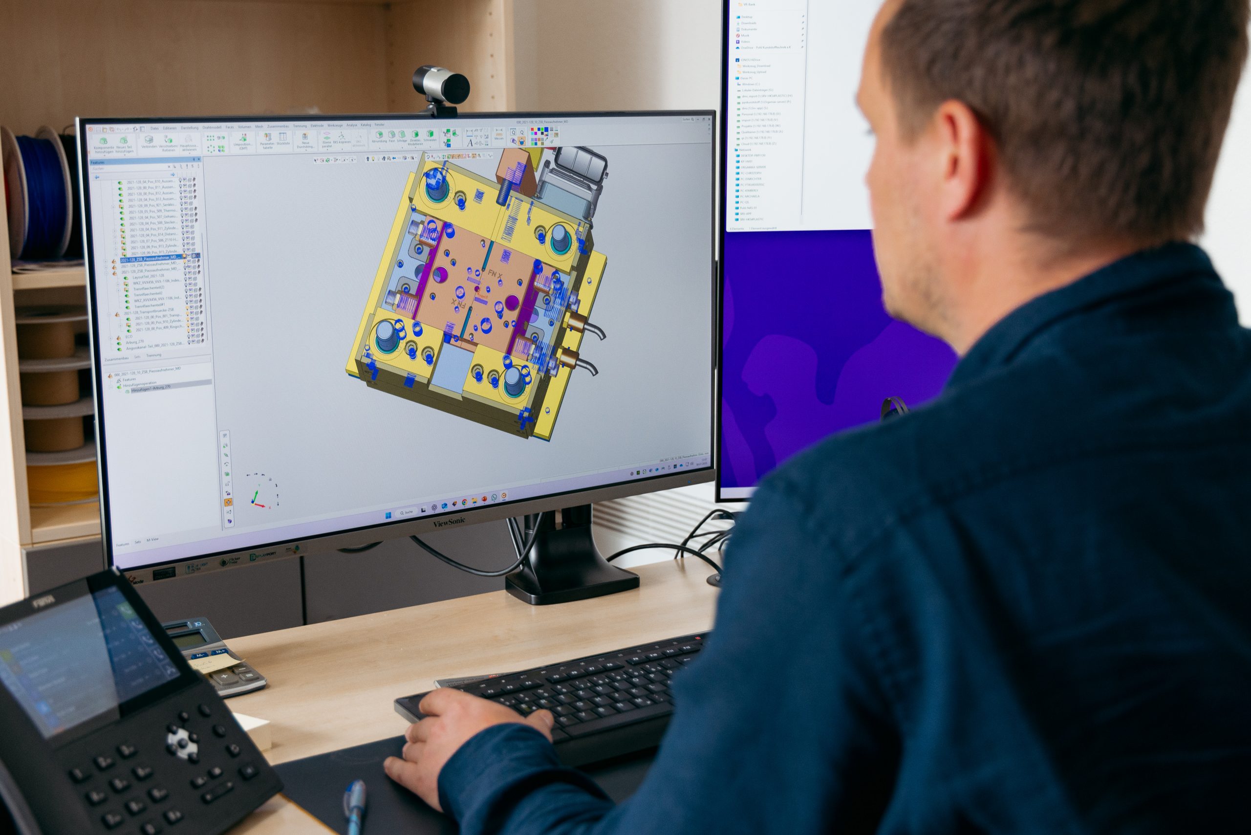 Am Anfang steht die Idee. Gemeinsam mit unseren Kunden prüfen wir die Anforderungen an das Bauteil und entwickeln daraus ein passendes Werkzeugkonzept. Mit CAD/CAM-gestützter Konstruktion und viel Erfahrung schaffen wir die Grundlage für eine wirtschaftliche und präzise Fertigung.